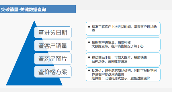 多渠道掌控客戶藥品銷量、進貨頻次及金額,客戶情況心中有數(shù),針對性藥品推薦,真正做到無縫銷售。