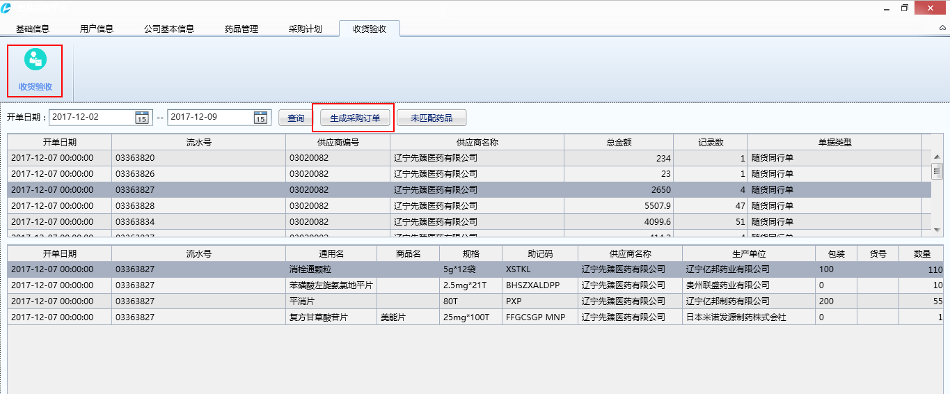 收貨驗(yàn)收:收貨員可以通過平臺(tái)將供應(yīng)商的隨貨通行單引入到采購商的ERP軟件,減少了收貨員及驗(yàn)收員錄入藥品數(shù)量、批號(hào)、效期的工作量。
